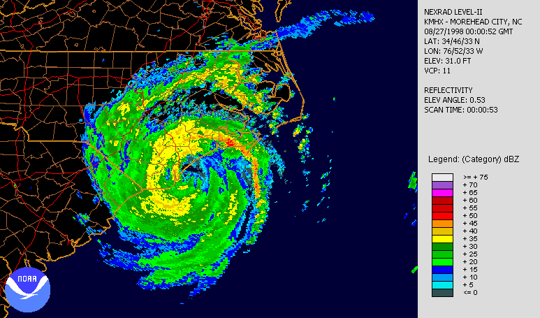 Source: Situation reports NEMA's archives. Photo Credit: Hurricane Floyd making landfall in North Carolina on September 16th, 1999. Radar is long range base relectivity. Created using NCDC JAVA NEXRAD tool File created by Hello32020