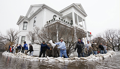 Record-breaking snowfalls and spring rains caused severe flooding in parts of the Missouri and Red Rivers in North Dakota, Minnesota, and South Dakota. During the 2 month flooding, 1031 personnel deployed to assist with the response. Seventy-one percent (71%) of the response was National Guard resources who primarily assisted with sandbagging efforts from the ground and air. Other resources included pet sheltering, traffic control and security, incident management teams, EMS units, and NRCC support.Photo credit: Star Tribune/Minneapolus-St. Paul 2009 - Rights Purchased
