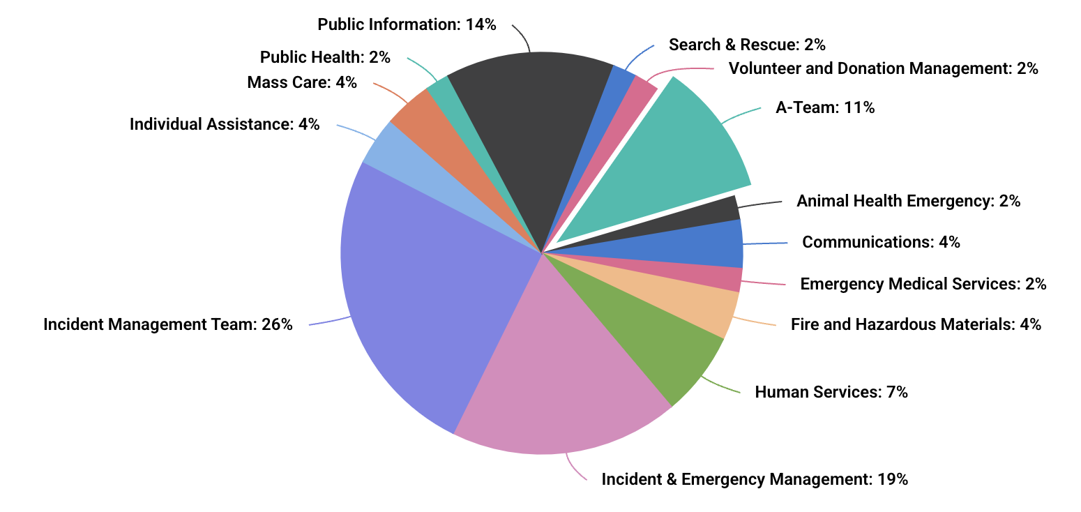 77% of resources were from the National Guard and 33% were state and local resources from agriculture and forestry, animal response, emergency management, fire, human services, law enforcement, and search and rescue.