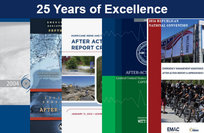When large scale disasters hit, it is a great opportunity to conduct a formal after action report to identify lessons learned, best practices, and areas for improvement. The EMAC Strategic Plan and the following After Action Reports are available as part of the EMAC continual improvement program.